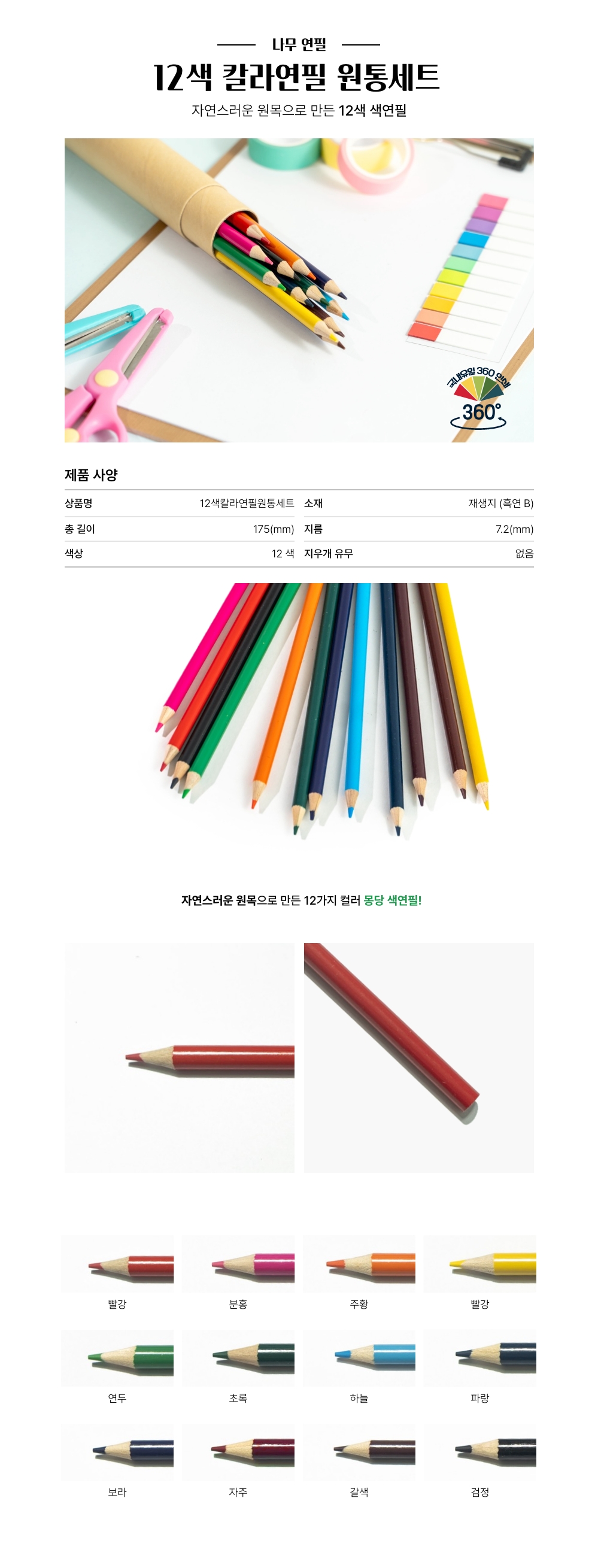 ±¸¼º 12»ö¿¬ÇÊ/¿øÅëÄÉÀ̽º Á¦Ç°±Ô°Ý 18.5 * 12ea